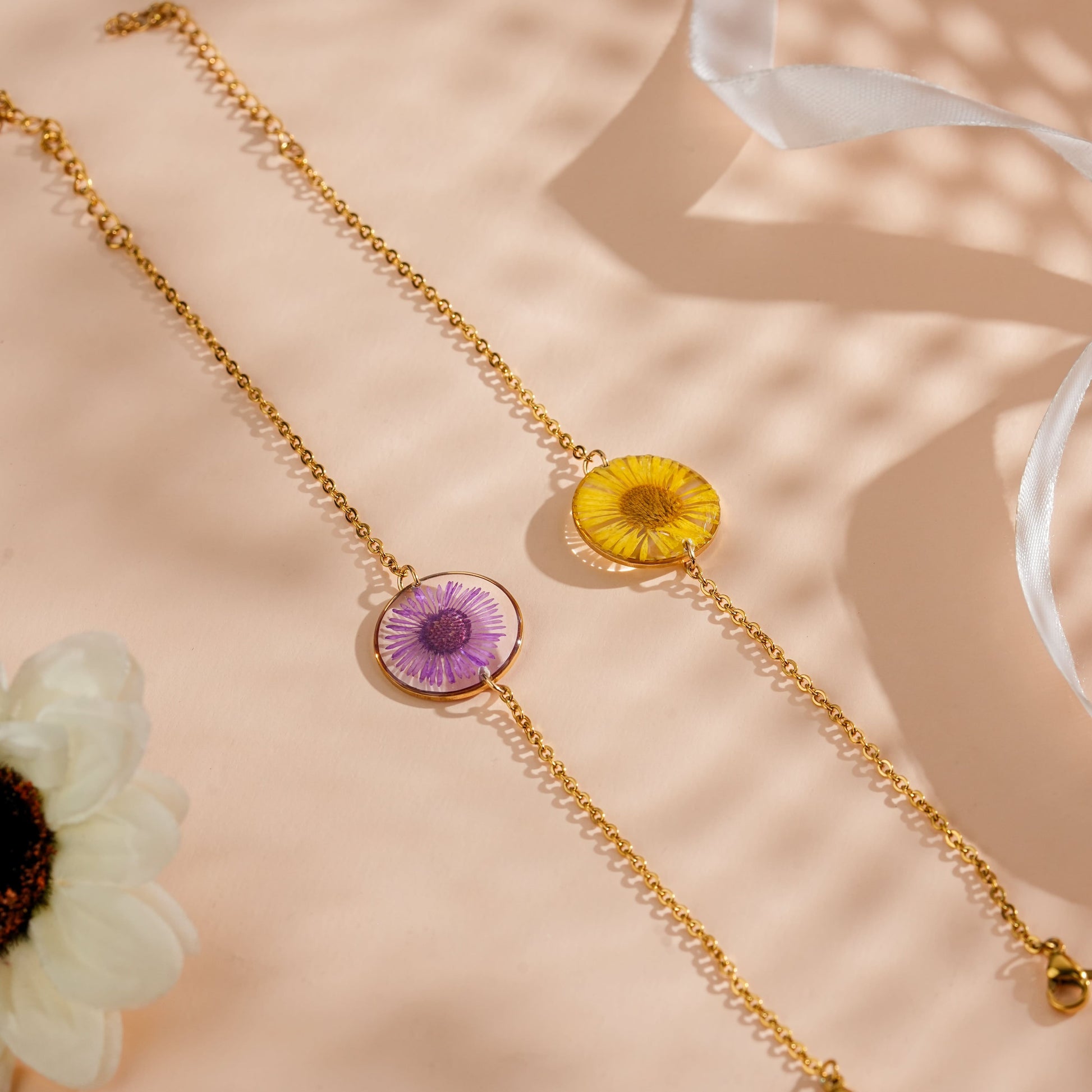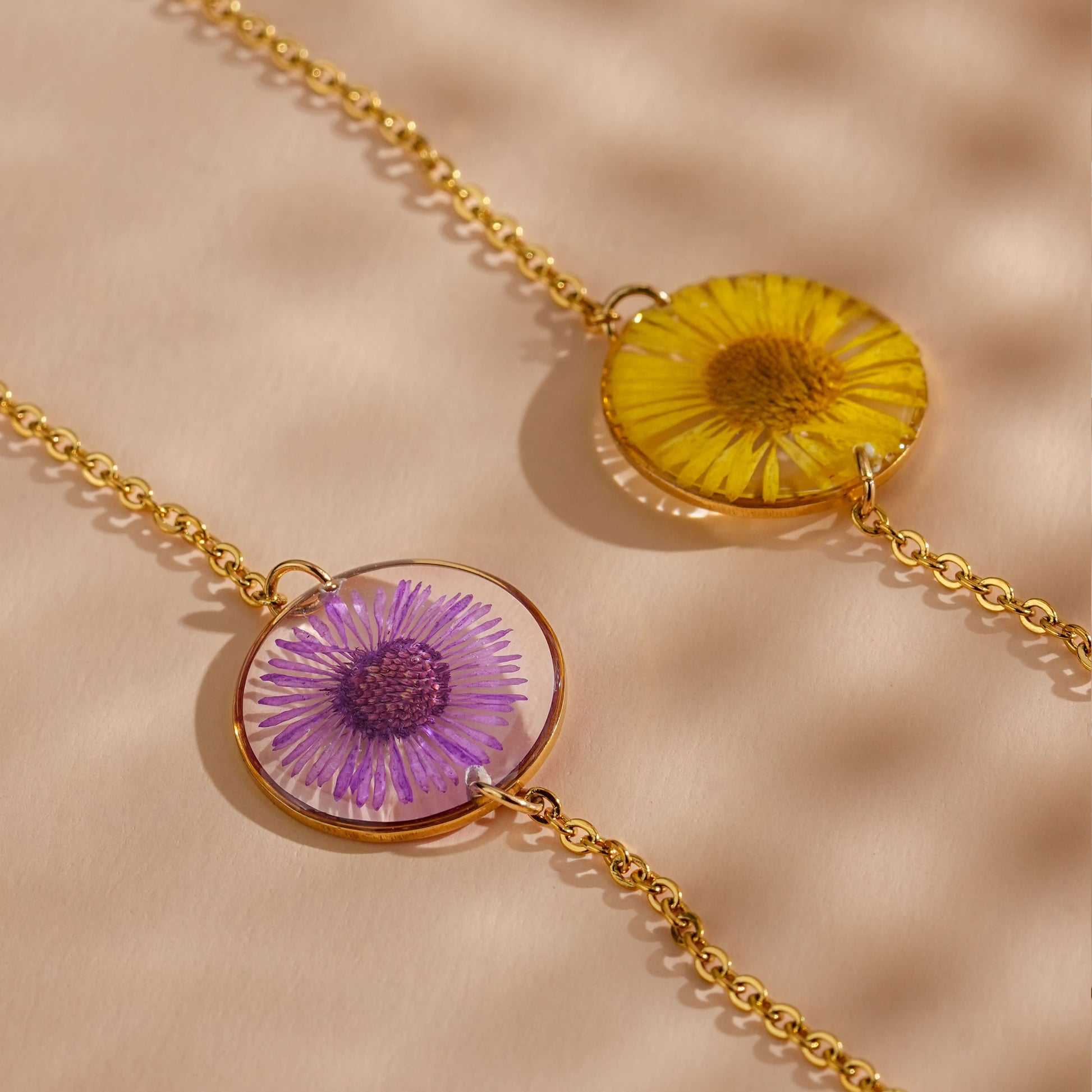 Material: stainless steel, aster flower and resin